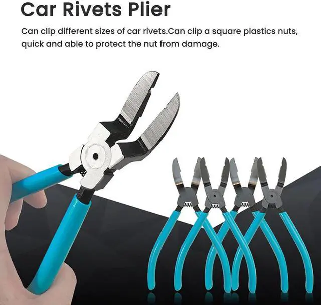 Features: Can clip different sizes of car rivets. Can clip a square plastics nuts, quick and able to protect the nut from damage. Be able to firmly grip the car rivets. Can snap directly from the hard cut. Clip, cutting, stripping and other features. Return spring design, more energy saving.