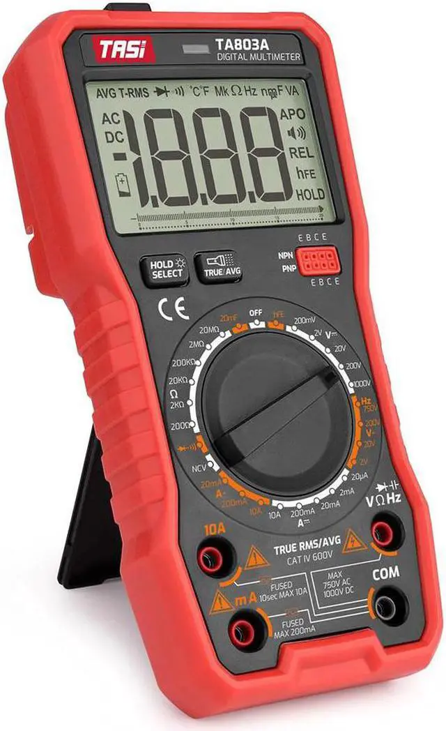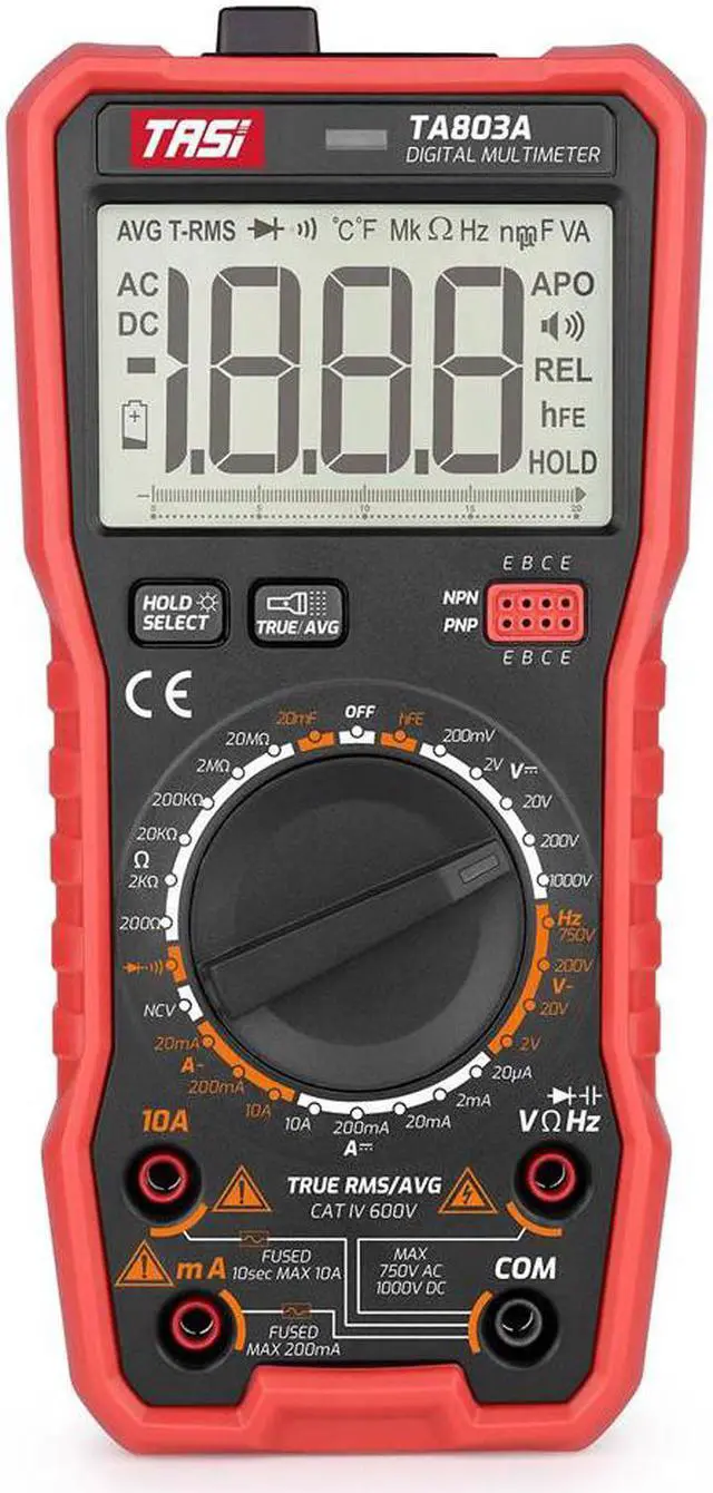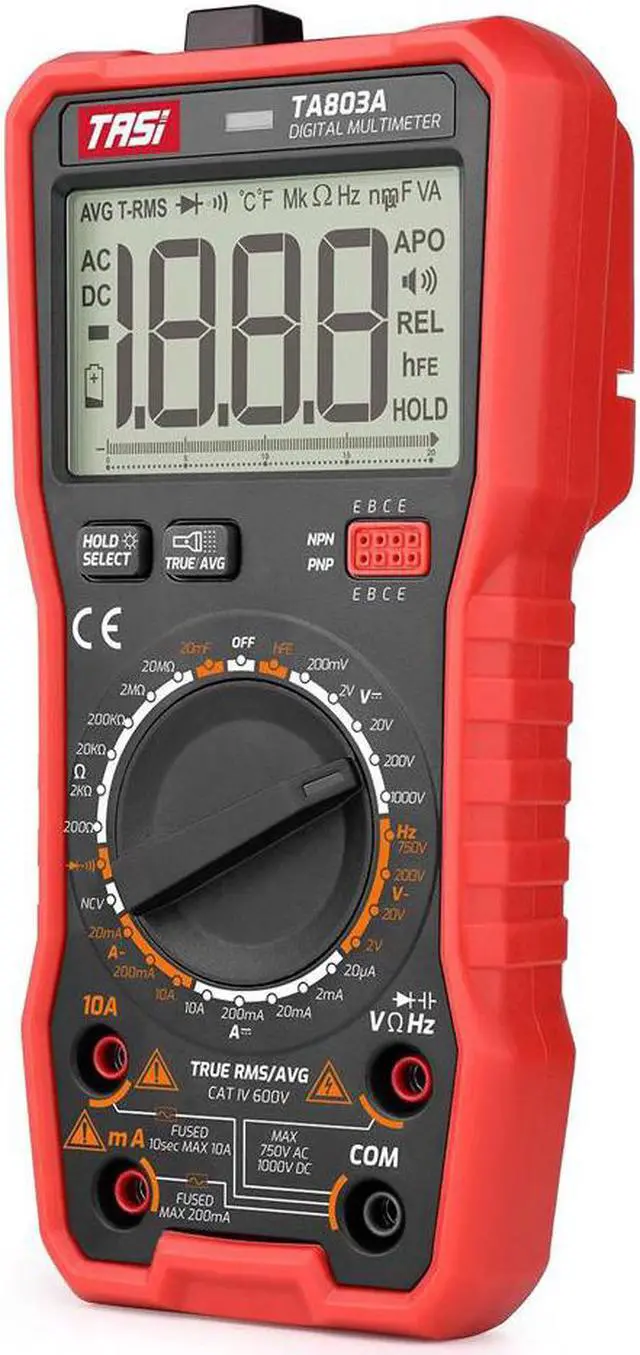 More Features of TA803A: manual range, analog bargraph diaplay, average value measurement, diode test, triode test, NCV test, 1999 counts maximum display.