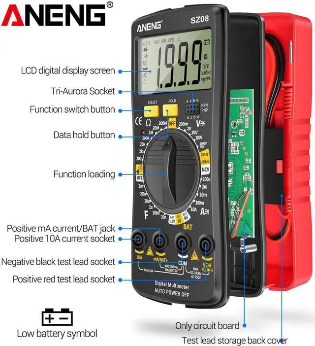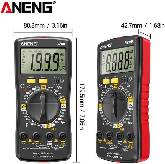 ANENG SZ08 Digital Multimeter Ultra-thin Storage Professional Multimetro Auto Voltmeter AC DC 220V Resistance Handhold Testers - Red