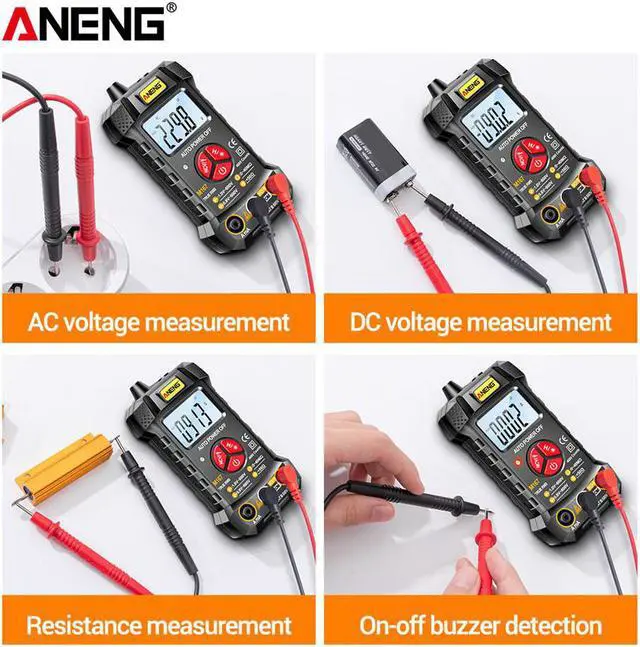 • Description:Intelligent recognition of AC and DC voltage, automatic shifting, no shifting required.With true effective value and 4000 count display function, the measurement reading is more accurate.Common functions such as non-contact voltage detection, on-off buzzer, resistance measurement, data retention, automatic shutdown, low-power indication, etc. are complete.The high-definition backlight display can be used normally even in a dark environment, and the flashlight can be turned on for auxiliary lighting in a particularly dark environment.