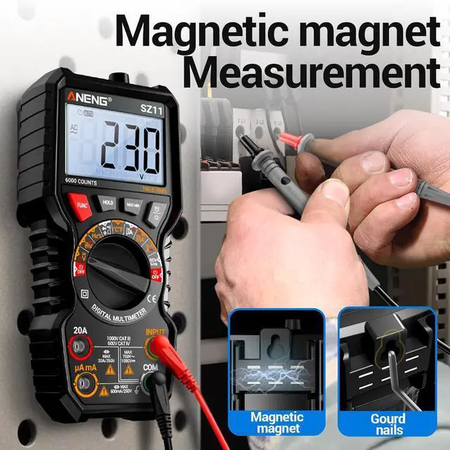6000 Counts & Magnetic Adsorption: High-resolution 6000 counts for accurate readings; strong magnetic adsorption attaches securely to metal surfaces, enabling safe, hands-free measurements at any angle.