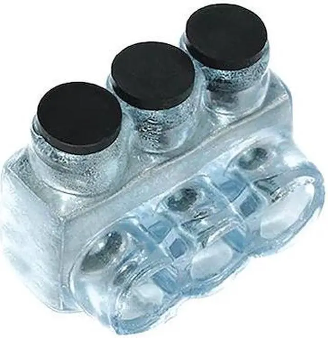 Multitap Connector, Body Material Aluminum, Color Clear, Finish Plastisol, For Conductor Material Aluminum, Copper, For Stranded Copper Wire Size - Minimum 14 AWG, For Stranded Copper Wire Size - Maximum 1/0 AWG, Head Style Hex, Hex Size 3/16 in, Insulation Material Plastisol, Maximum Operating Temperature 194 Degrees F, Maximum Voltage 600 V, Number of Ports 3, UL 94 Flammability Rating Not Applicable, RoHS Compliant Yes, Standards cULus, UL 486A, UL 486B. This item has been restricted from sale in the following state (s): []