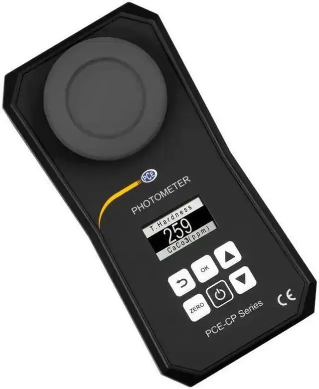 The multi-parameter photometer is a mobile measuring device for liquid analysis. This enables the most varied of measurements to be carried out with the multi-parameter photometer. With this multi-parameter photometer, for example, it is possible to determine alkalinity, chlorine, cyanuric acid or the pH value. In order to carry out a measurement with the multi-parameter photometer, a water sample of 10 ml must be placed in a cuvette. The built-in LED in the multi-parameter photometer generates a test light in the wavelength ranges of 503 nm, 570 nm and 620 nm.