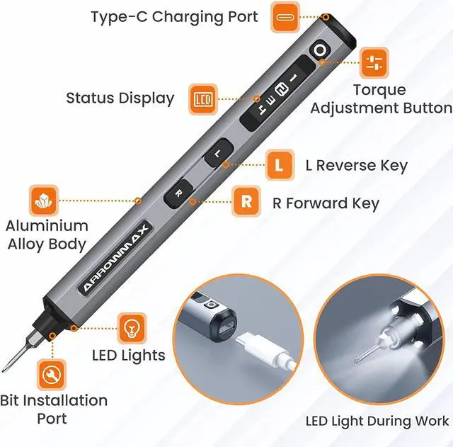 Long-Lasting Battery - SES Electric Screwdriver is equipped with 500mAh battery, long battery life, once you get this precision screwdriver set, you can use it for a long time without charging. In addition, this mini electric screwdriver can tighten a total of 900 screws. The USB-C port is convenient for you to charge at any time. Our electric screwdriver doesn't charge off of USB-C PD chargers, it only supports USB-A to USB-C charging.