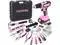The pink tool set contains almost every basic hand tools you need for work and DIY projects around the house