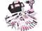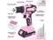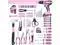 ncludes cordless drill driver, slip joint pliers, groove joint pliers, adjustable wrench, long nose pliers, magnetic screwdriver holder, screwdriver bits, utility knife, tape measure. The pink drill set for women is perfect for your home use or gifts