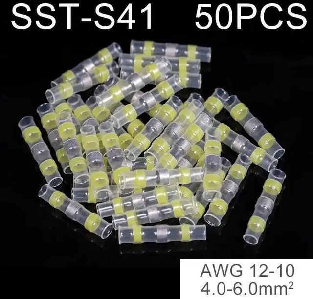 First picture~50Pcs Solder Seal Wire Connectors Heat Shrink Solder Butt Connectors Solder Connector Kit Automotive Marine Insulated(Green 50 Pcs yellow )