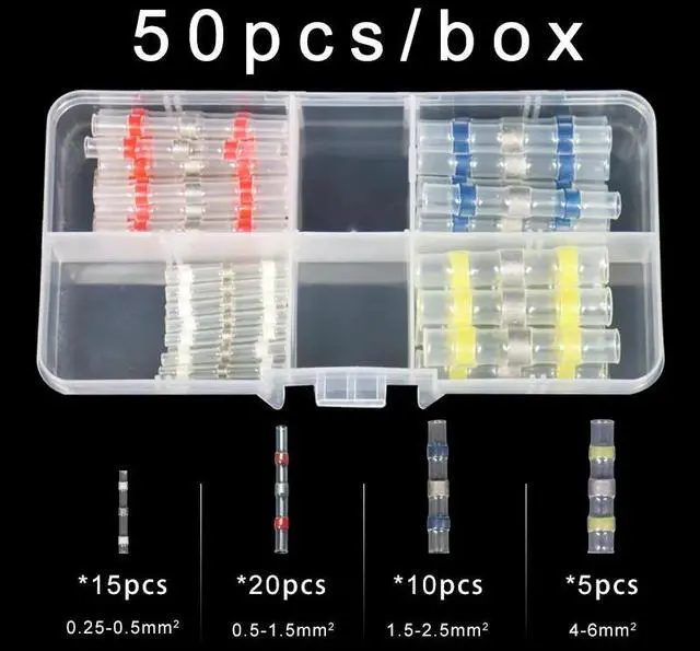 • 50pcs Solder Seal Wire Connectors Heat Shrink Solder Butt Connectors Solder Connector Kit Automotive Marine Insulated