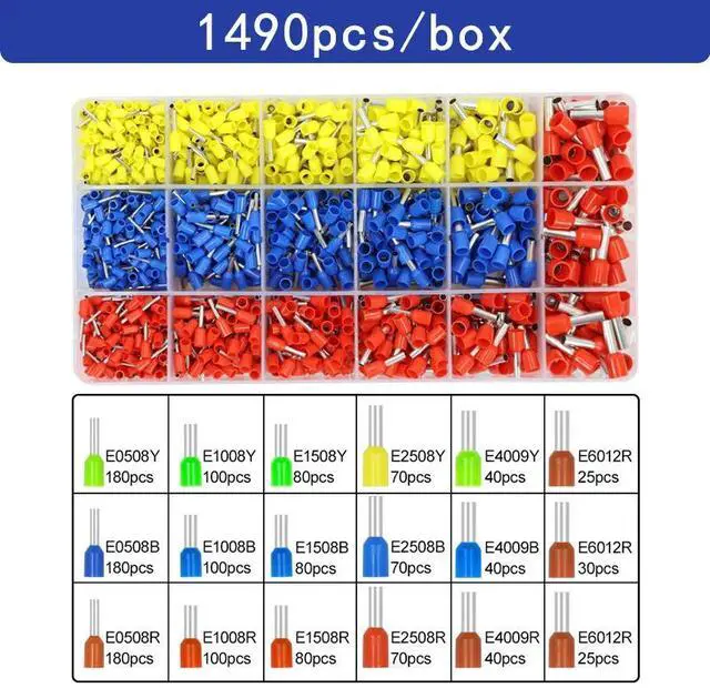First picture~Boxed tubular terminal various styles electrical wiring connector crimping insulated tube terminals set for 0.5mm²-10mm² wire(Grey 1490Pcs box )