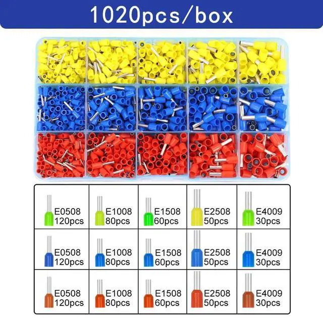 First picture~Boxed tubular terminal various styles electrical wiring connector crimping insulated tube terminals set for 0.5mm²-10mm² wire(Orange 1020Pcs box )