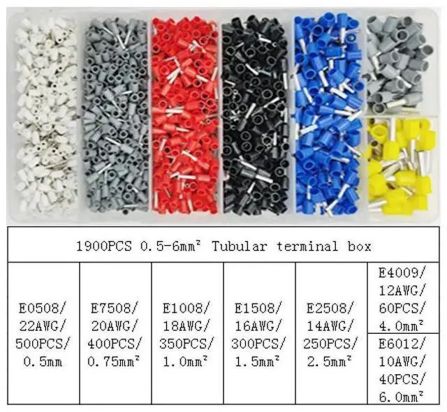 First picture~Tube Type Terminal E0508 E7508 E1008 E1508 E2508 E4009 E6012 E1012 Crimping Insulated Ferrule Copper Terminal Wire Connector(Red 1900Pcs )