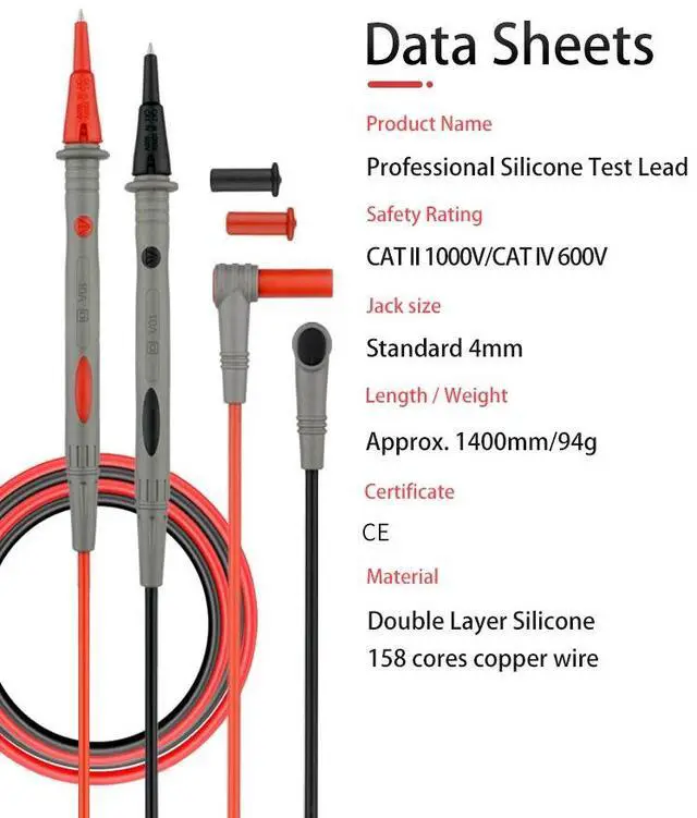 First picture~Multimeter Test Lead Soft Silicone 158 cores Copper Wire Low Impendance Universal Digital Multimeter probe Test Leads Needle Tip(Silver High Qua. Silicone