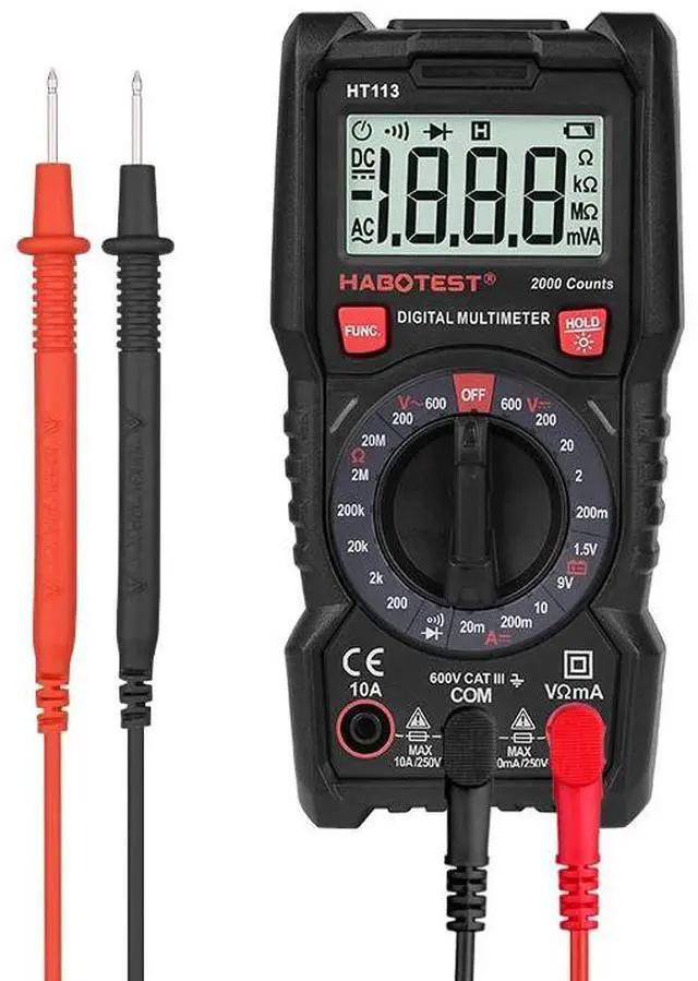 • Habotest HT113 600V Digital Multimeter Multitester AC DC Voltage Current 10A Ohm transistor tester multitester professional