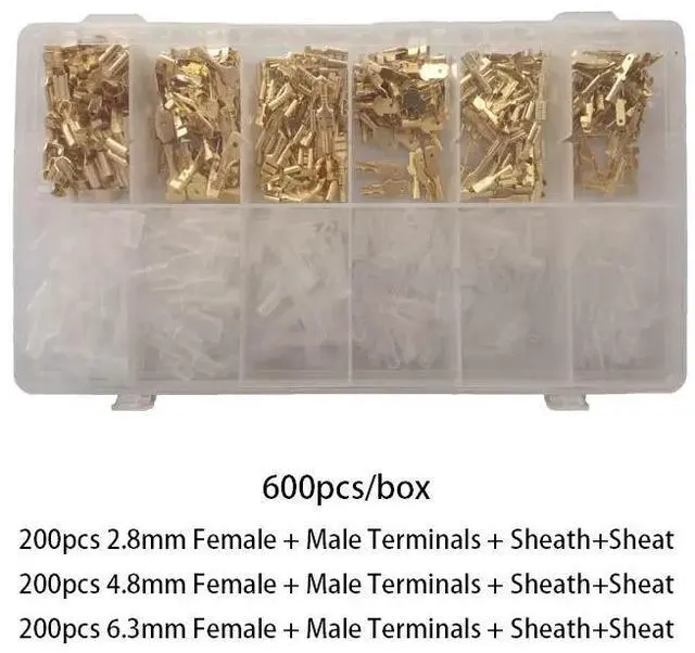 First picture~Metal Connector 2.8/4.8/6.3mm Copper Wire Terminals Male Female Connectors Electric Terminal Wire Connection Spade Connector(Line Connector Ivory 600Pcsbox )
