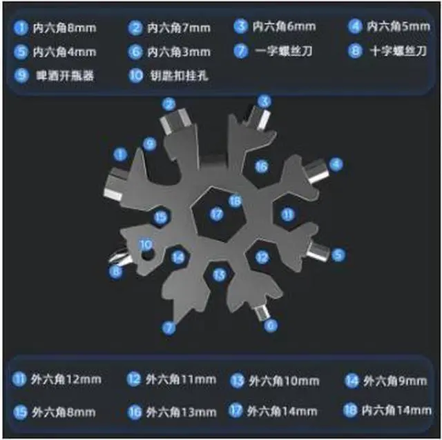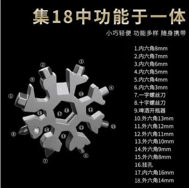 Multifunctional Snowflake Wrench Tool Steel Octagonal Hexagonal Portable 18-in-1 Mini Universal Wrench