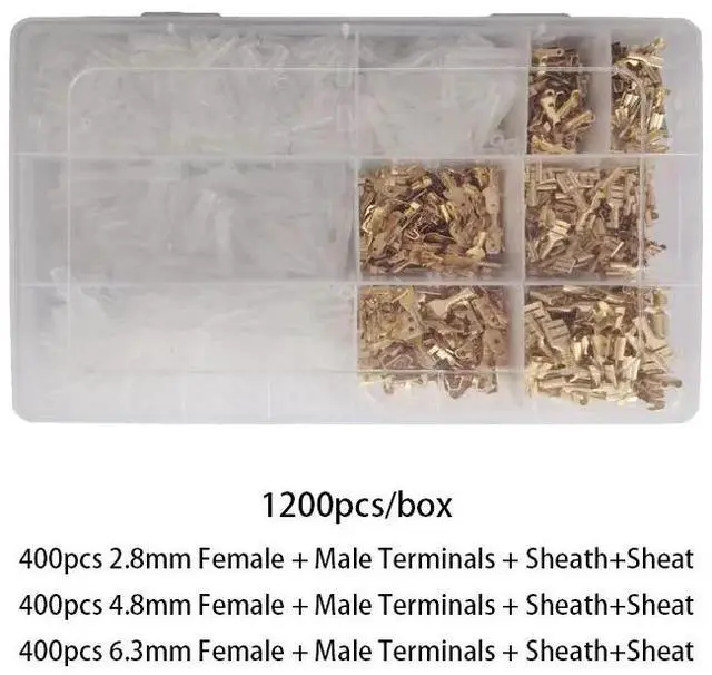 First picture~Metal Connector 2.8/4.8/6.3mm Copper Wire Terminals Male Female Connectors Electric Terminal Wire Connection Spade Connector(Line Connector Gold 1200Pcsbox )