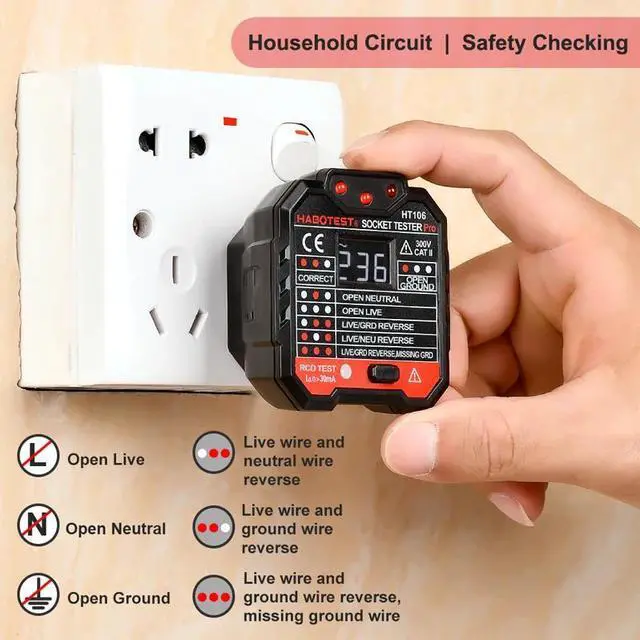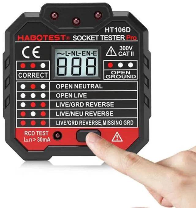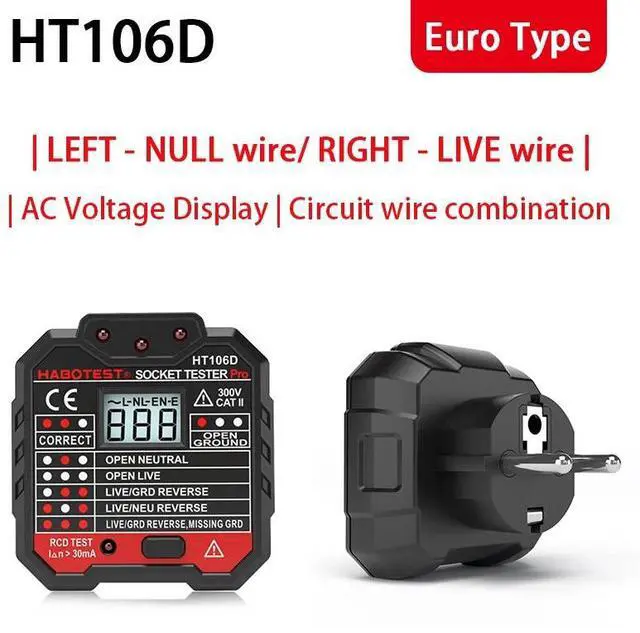 Socket Tester Voltage Indicator HABOTEST HT106 Professional Digital Electric Outlet Detector EU UK Plugs Circuit Check 30mA RCD