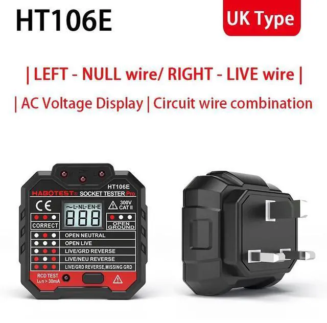 • Socket Tester Voltage Indicator HABOTEST HT106 Professional Digital Electric Outlet Detector EU UK Plugs Circuit Check 30mA RCD