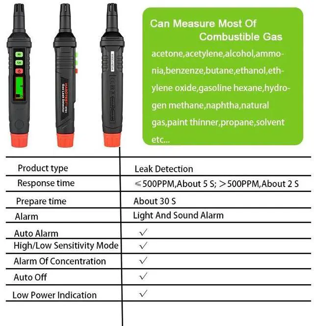 • HABOTEST HT61 Gas Leak Detector Gas Analyzer Pen Type Mini Portable PPM Meter Combustible Flammable Natural Tester 1000ppm
