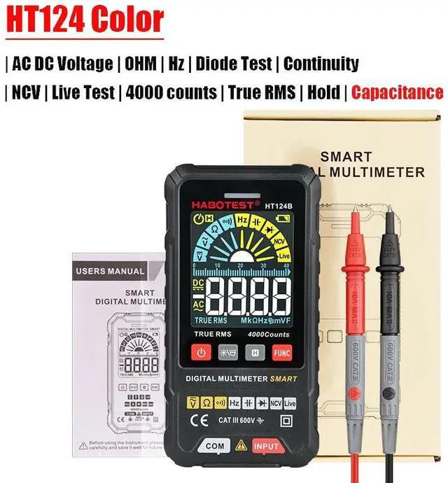 First picture~ Multimeter Digital professional Multimeter Tester Capacitor Ohm Voltage Indicator Electrician Tools Multitester Meter(Brown HT124 Color Meter )
