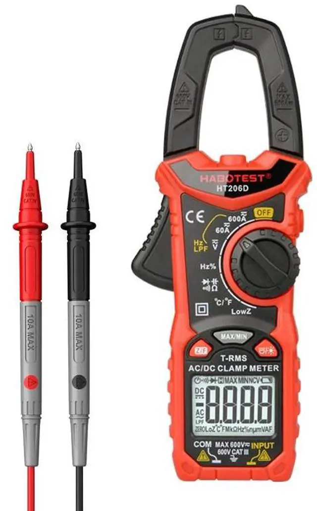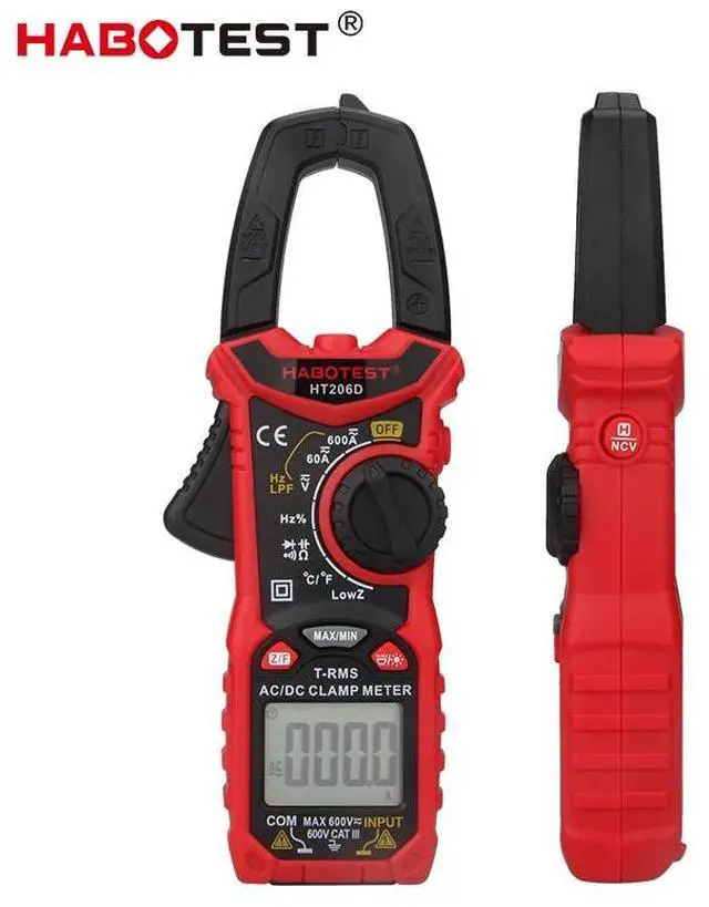 • Habotest HT206D AC DC 600V 600A Ohm Hz Temperature Digital Clamp Meter multimeter pinza amperimetrica
