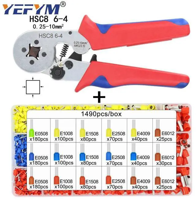 • HSC8 6-4 ferrule Crimping Pliers 0.25-10mm² Automatic crimping wire crimper tools mini electrician suit kit with terminals box