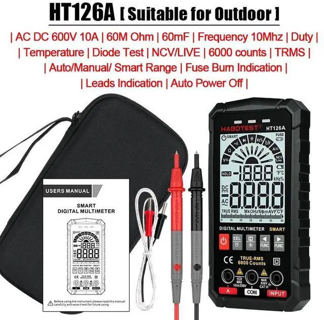 First picture~ 5th Generation Multimeter Digital professional AC DC TRMS Voltage Current Ohm 60mF Hz DIY Electrician Meter Tester(Purple HT126A Multimeter )