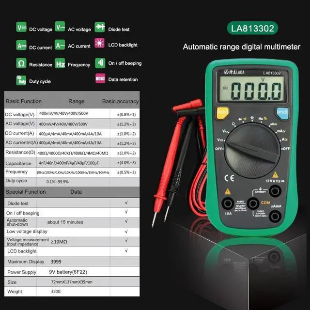 • LAOA Digital Multimeter AC/DC Ammeter Voltmeter Ohm Portable Meter voltage meter Clamp Multimeter Probe Professional Tools