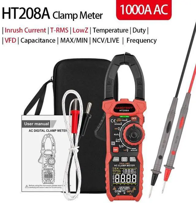 First picture~professional Clamp Meter Multimeter 1000V 1000A AC DC True RMS pinza Amperimetrica Capacitance Ohm Hz VFD Digital Clamp Tester(Brown HT208A 1000 AC )