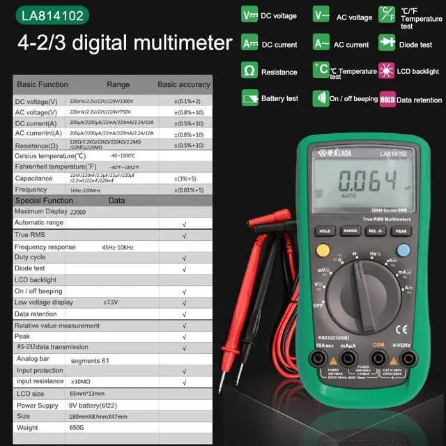 LAOA Digital Multimeter AC/DC Ammeter Voltmeter Ohm Portable Meter voltage meter Clamp Multimeter Probe Professional Tools