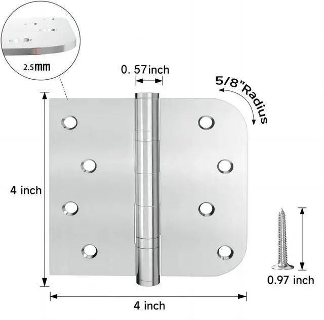 FLEXIBLE AND SILENTOur door hinges come with smooth operating plain bearing hinge, smooth operation without jam or squeak. Much more silent and smoother when you close & open the door. Perfect for any commercial or intensively used door.