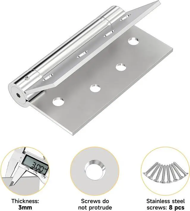 MATERIALOur door hinges all partsareIncluding pinare made of 304 stainless steel material, fit for any extremely weather condition. The thickness 3mm is adopted, with strong bearing capacity, no deformation, corrosion resistance, oxidation resistance and durable.
