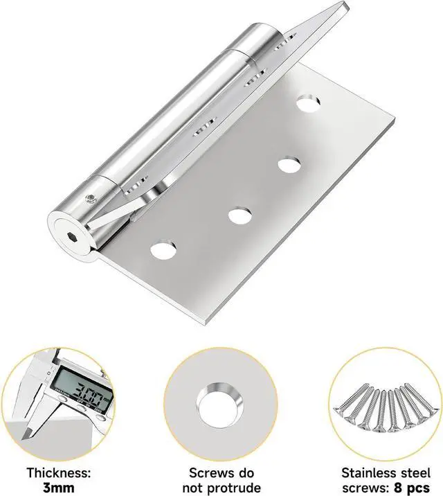 SMOOTH AND QUIETOur door hinges have springs on the inside, which are corrosion-resistant and squeak-proof. Much more silent and smoother when you close & open the door without jamming or squeaking. They are heavy duty ss reversible hinges, that means you can use this hinge whether your door is a left hand door or right hand door. Perfect for any commercial or frequently used door.