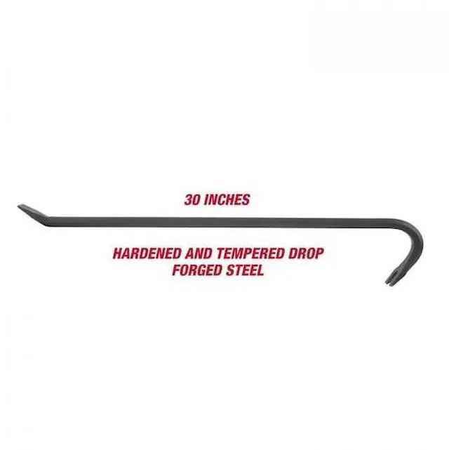 The GreatNeck Wrecking Bar (30 Inch) with 3/4 Inch diamater is used to pull nails and to pry apart wood. The nail puller head on the gooseneck end provides leverage for heavy pulling and the other end has a bent chisel head for prying. The wrecking bar is made of drop
