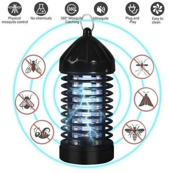 - Este eliminador de insectos atrae molestos insectos voladores que emiten luz UV de onda larga de alta intensidad (365 nm) para atraer a todos los insectos voladores como moscas, mosquitos incapaces de resistirse a acercarse. Luego, las rejillas metálicas de alto voltaje cargadas eléctricamente electrocutarán a los insectos. Te desharás de todos los insectos e insectos no deseados inmediatamente.