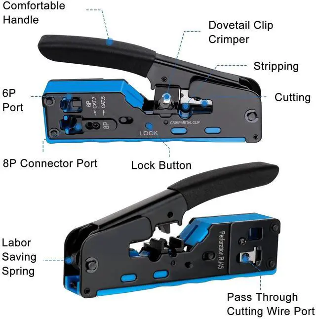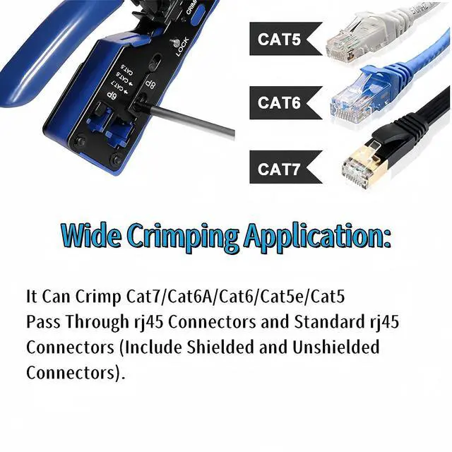 Suitable for Cat7, Cat6A, Cat6, Cat5e, Cat5 cables; Greatly Crimping rj45 Pass Through Connectors and rj45 Standard Connectors(Including Shielded and unshielded Connectors).