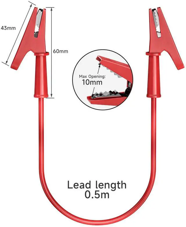 - The max open diameter of the alligator clip is 10 mm, which can basically meet your testing needs.