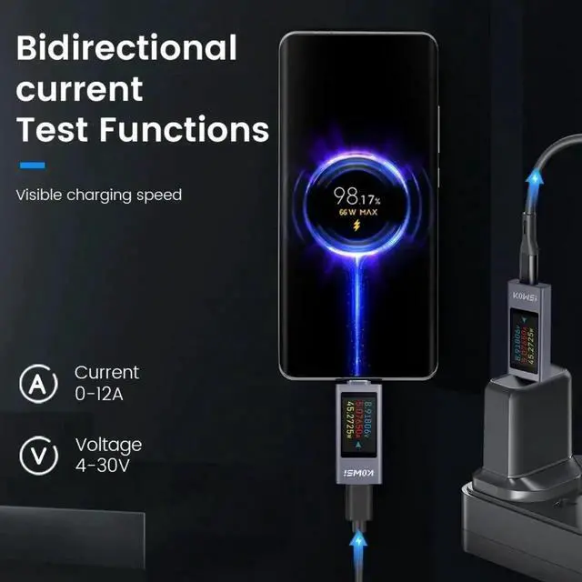 Saved Data:Full interface compatibility,support power-down save data,support fast charging test,bidirectional current test function,real-time charging power detection