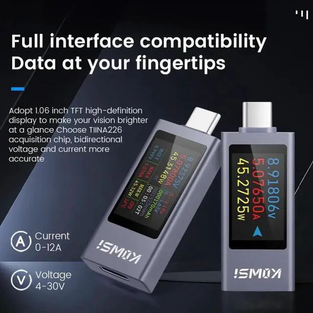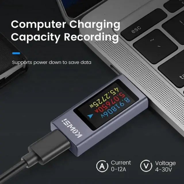 JVFYI USB C Tester Power Meter DC 4-30V 0-12A Type-C PD QC 2.0 3.0 Current Voltage Capacity Phone Tester Power Detector Battery Test Working Time Ammeter Voltmeter Charger Detector