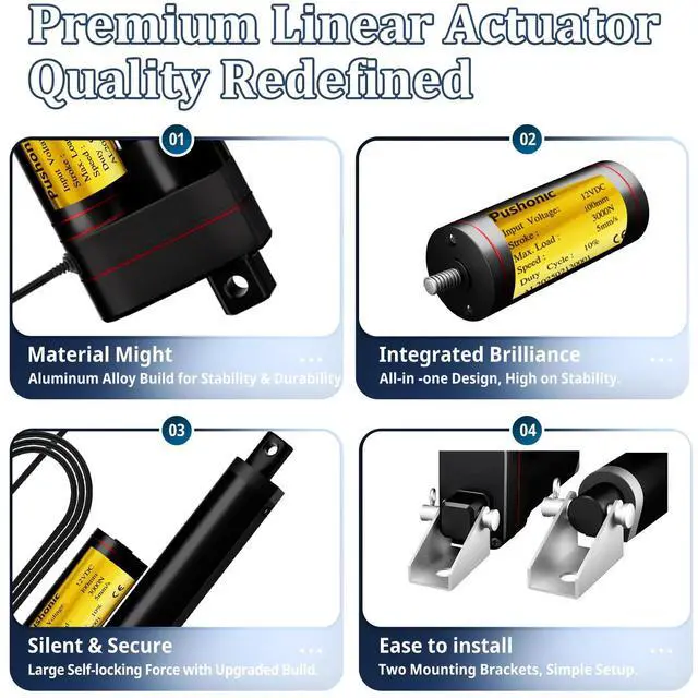 - Low Noise & Durable Build: Constructed from aluminum alloy with waterproof and dust-proof housing,this upgraded electric linear actuator has High-quality plastic worm gears keep noise under 50dB. Offers stronger self-locking and longer life than other bear linear actuator models