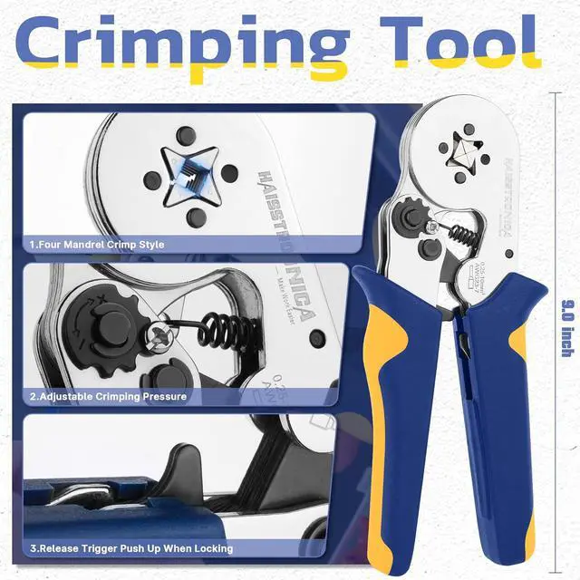 Adjustable Crimp Pressure: Ratchet adjustment mechanism, set to the appropriate diameter, ensures optimum crimp every time. Ferrule tool is designed for precise and secure crimping of wire ferrules