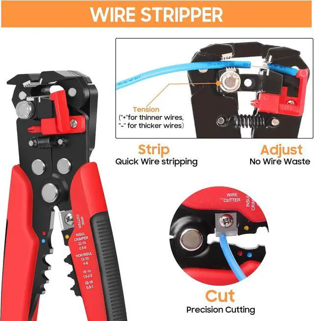PRECISION WIRE STRIPPERSimplify wire stripping with this efficient wire stripper tool. Its sharp blades cut insulation cleanly and quickly, saving you time and effort. Say goodbye to damaged wires and uneven stripping.