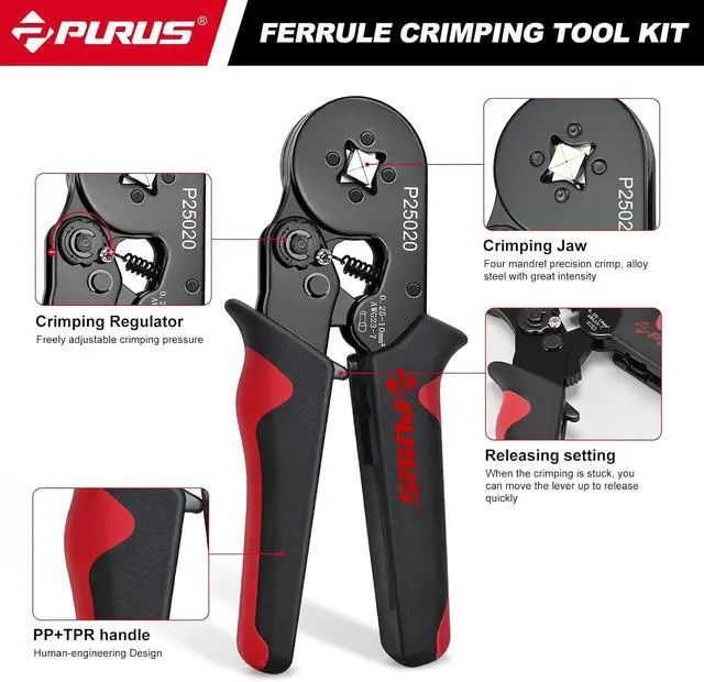 Professional Crimping Tool: The wire ferrule crimper has a range of 0.25 -10mm²/23-7 AWG, with the knife edge and surface processed through multiple steps, enhancing the durability of the crimper pliers.