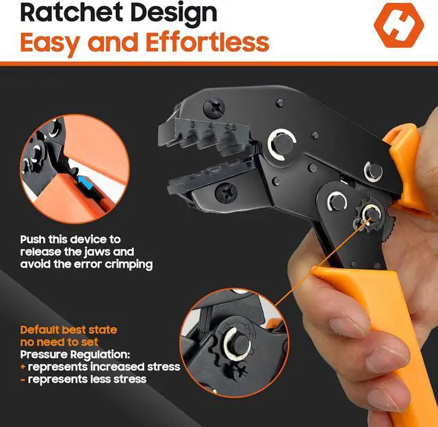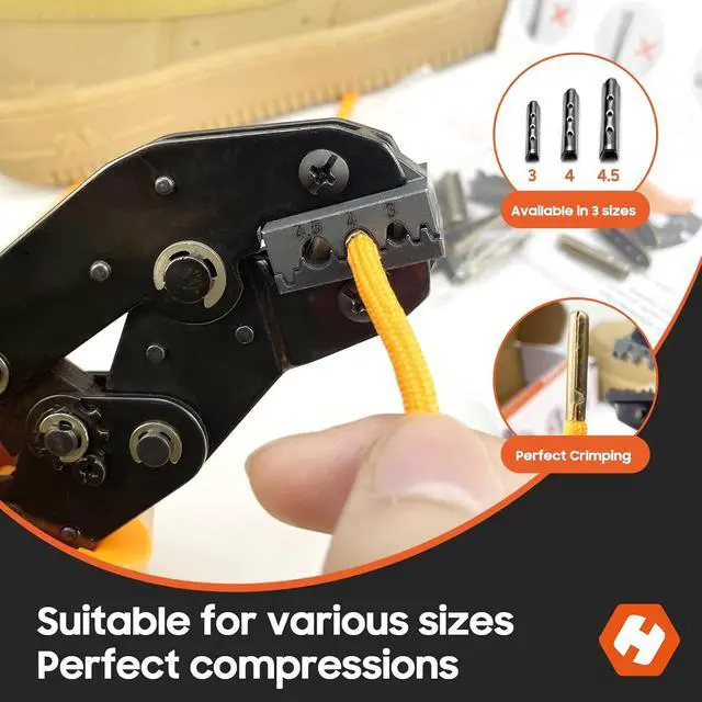Powerful function: metal aglets tool adopt adjustable pressure device and ratchet design, labor-saving and can lock the position, complete the automatic release after pressing. The non-slip handle feels comfortable.