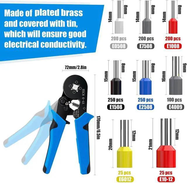 Package Includes: You will receive ferrule crimping tool kit, which includes 1250 wire end terminals and crimper piler (AWG: 23-7). And the crimping area is 0.25 -10 mm². They can be used for industrial electricians, ferrule connectors, Electrical connectors, equipment switch, relay power supply, car audio, lamp, speaker wiring project, and so on