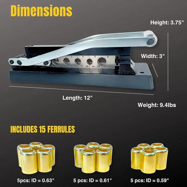 Durable ferrule crimper tool is made from high-strength ductile iron, ensuring exceptional longevity and performance. It is compatible with most common hose sizes and materials, such as rubber, hybrid, pvc and polyurethane.
