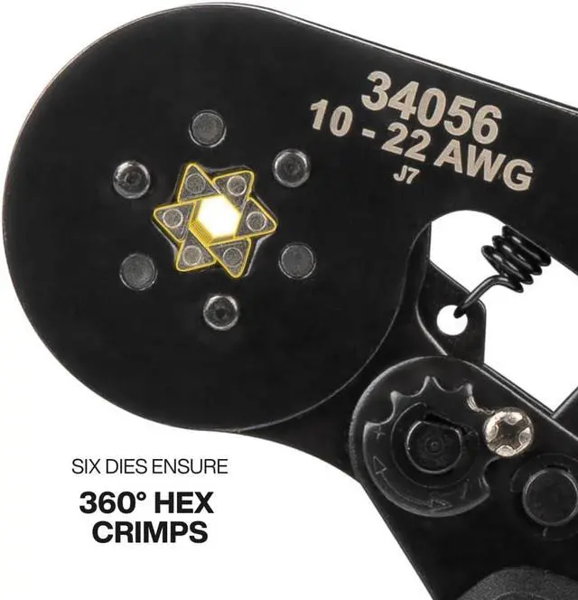 SECURE HEX CRIMPS: Six precision dies create strong, 360-Degree crimps for durable and reliable connections