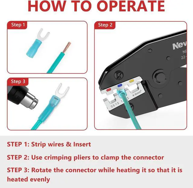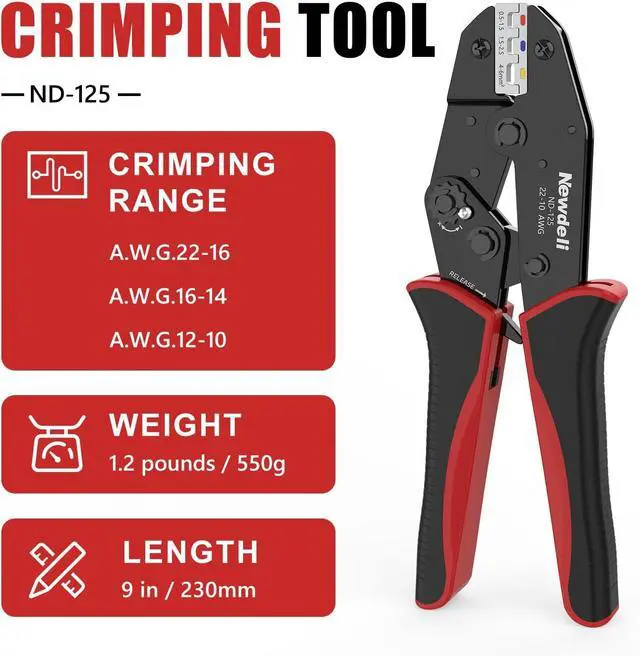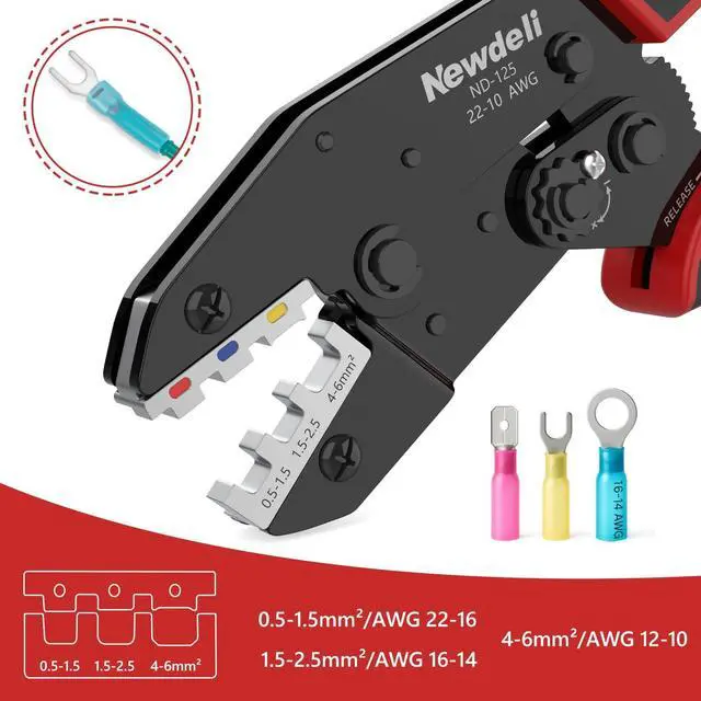 WIDELY COMPATIBLEIdeal for a range of applications, this crimping tool is perfect for heat shrink wire connectors, insulated nylon connectors and wire terminals. Whether you' re handling appliance repairs, automotive wiring, or various circuit connections, trust Newdeli to be your reliable partner in every electrical project.