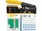 PACKAGING - A Pass Through 8P/6P crimp tool, A yellow wire stripper, 50pcs x cat5e connector (working for 26AWG and 24AWG Cable), 50Pcs Covers, A set of blades, A 6P/8P Cable Tester(Battery not included, require 1 piece 9V 6F22 battery)