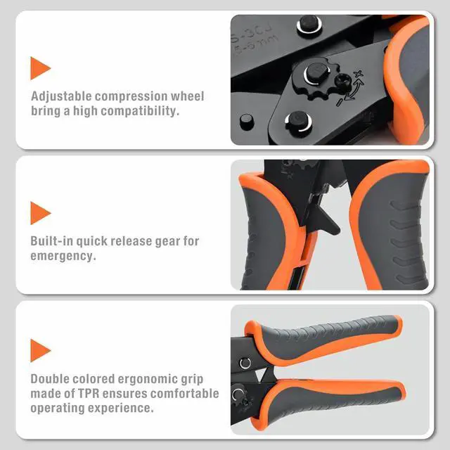 The efficient ratchet mechanism also help to lock the terminals while insert the wire to perform a strong crimp. The adjustable compound action design ensure enough power into each squeeze.